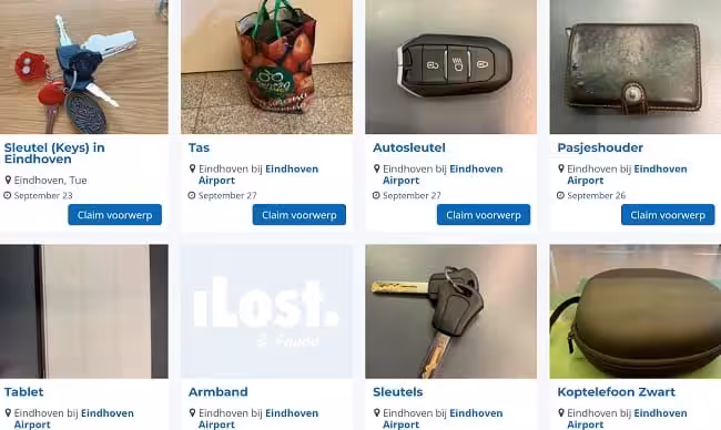 Zodra deze spullen op Eindhoven Airport worden ontdekt, worden deze binnen 24 uur op iLost geplaatst.